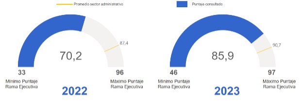 Esta reciente medición corresponde a la gestión del año 2023 y representa un incremento de 15,7 puntos en comparación con los 70,2 puntos de 2022. Esto significa una mejora, o variación positiva, del 22,3%.